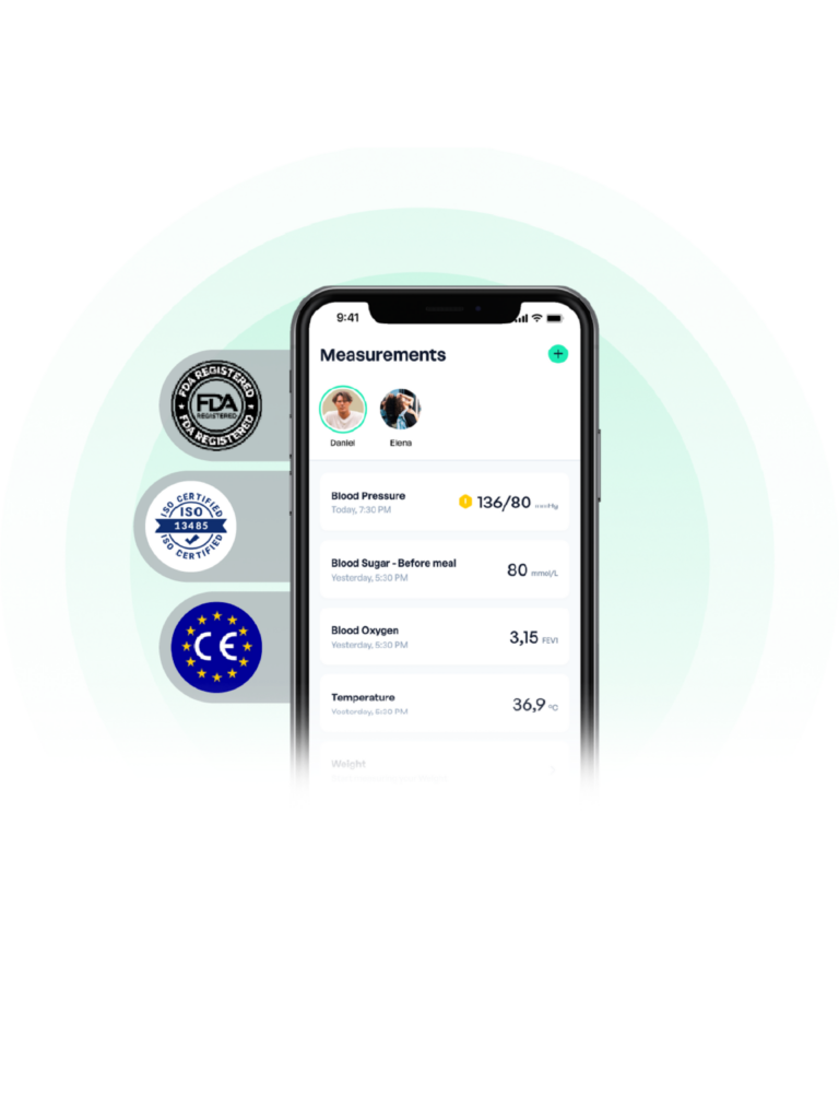 Telemon integrates with certified medical devices designed for telemedicine, providing reliable measurement of physiological functions.